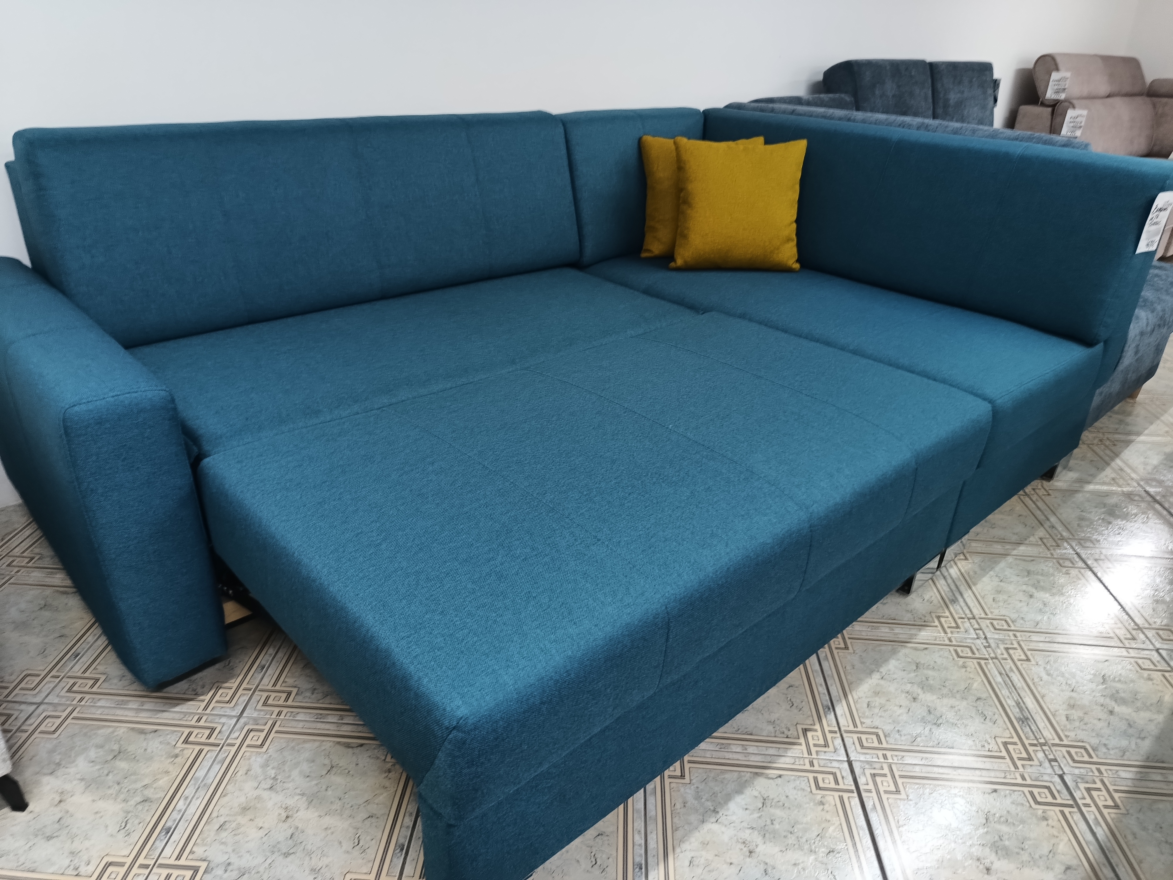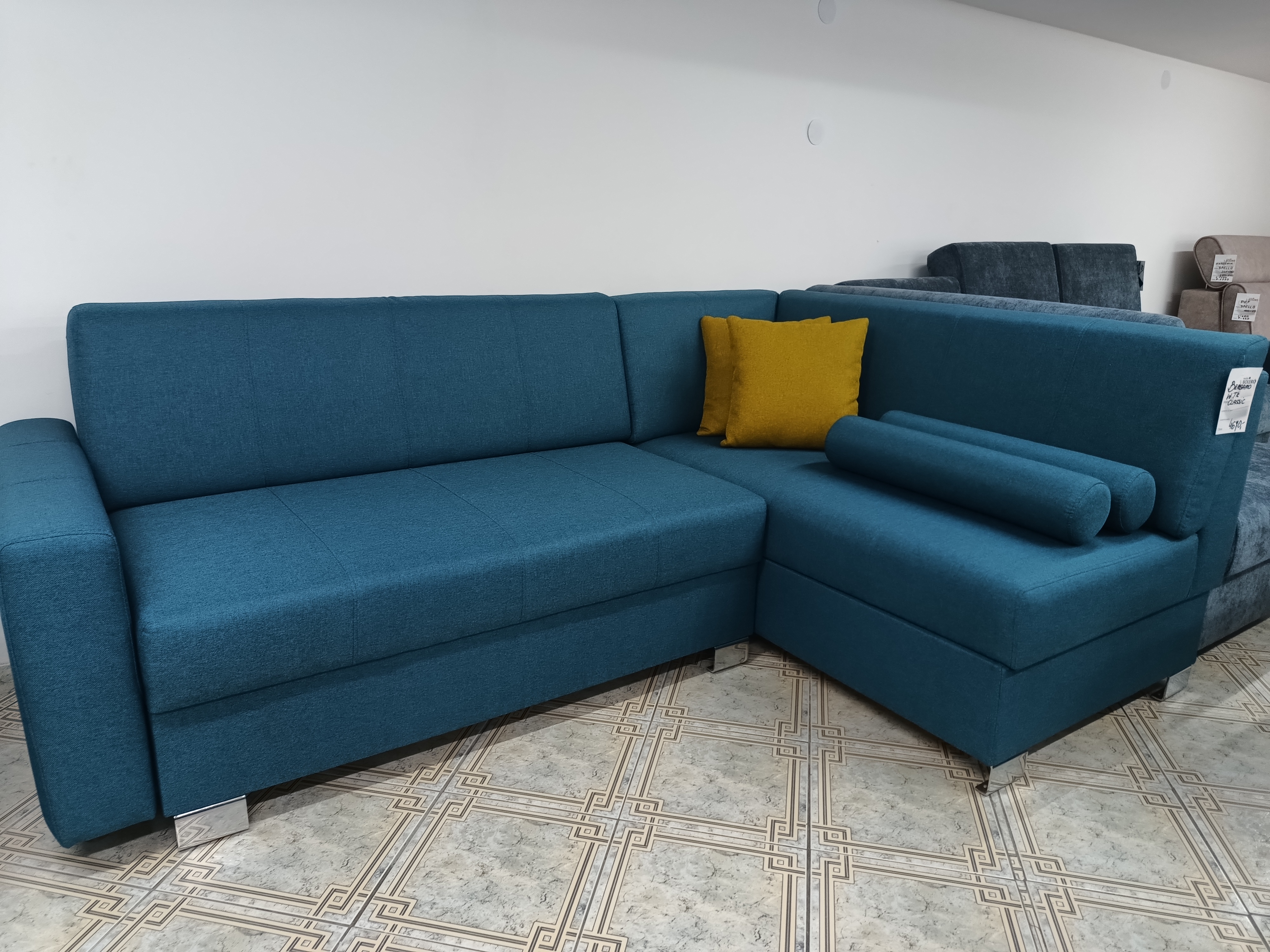 Mamy dla Ciebie wyjątkową okazję! Poznaj narożnik Bergamo – mebel, który łączy nowoczesny design z wyjątkową funkcjonalnością, a teraz dostępny jest w specjalnej cenie wyprzedażowej jako egzemplarz z ekspozycji! Jest to ostatnia sztuka w tej kolorystyce (turkus/morski z żółtymi akcentami) i jest gotowa do natychmiastowej wysyłki.