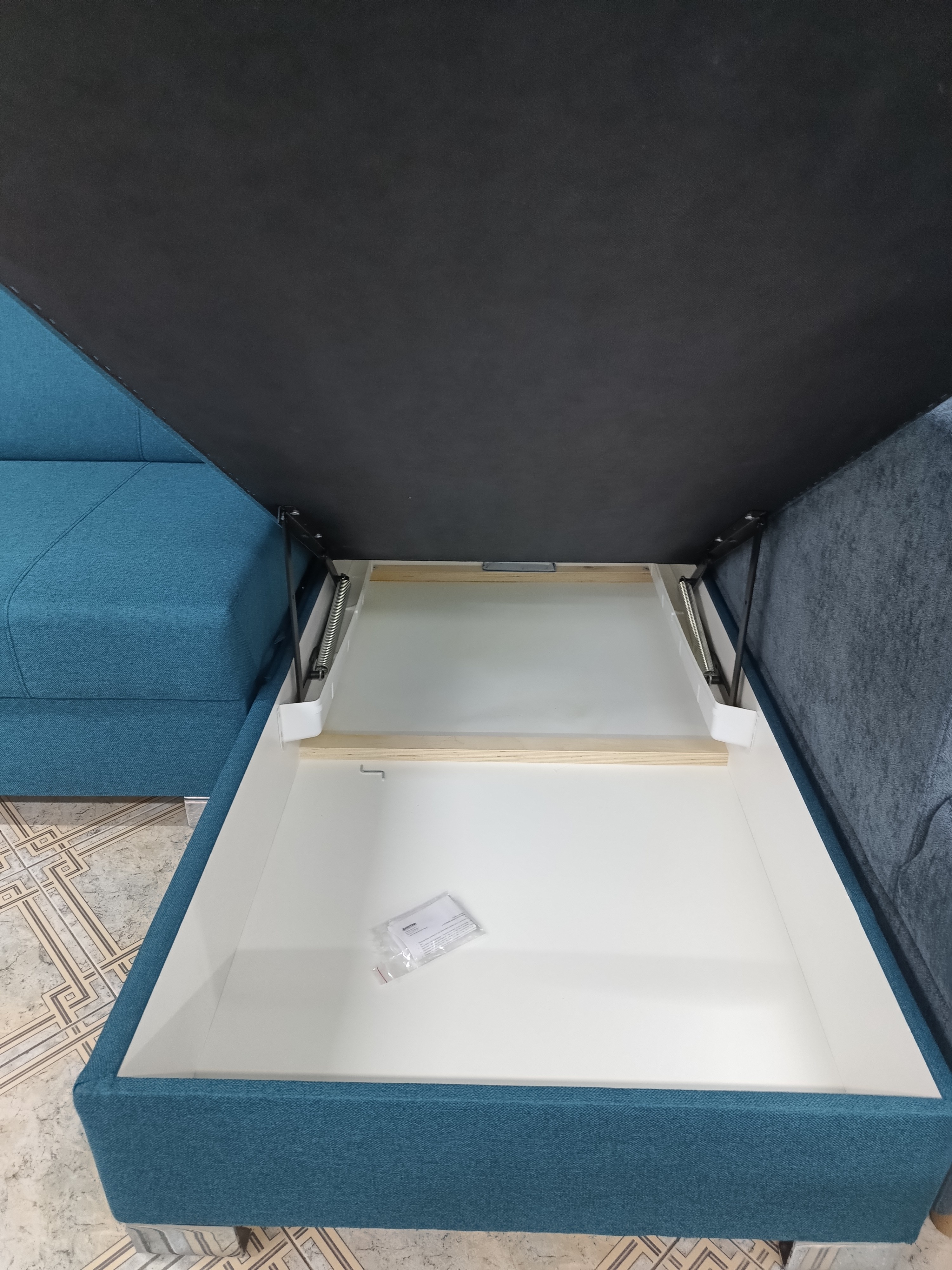 Wbudowany Pojemnik na Pościel: Duży schowek ukryty pod siedziskiem to idealne miejsce na pościel, koce lub inne tekstylia, pomagając utrzymać porządek w salonie.