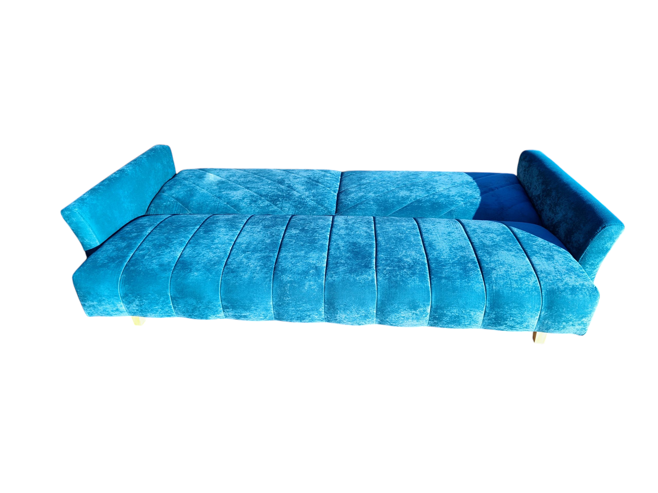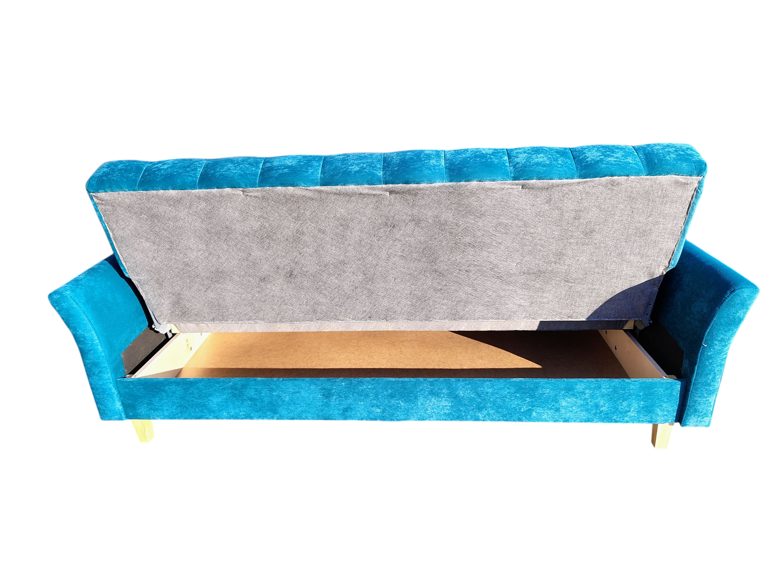 Wersalka Wiktoria – Turkusowy Welur z Funkcją Spania 200x120 i Pojemnikiem